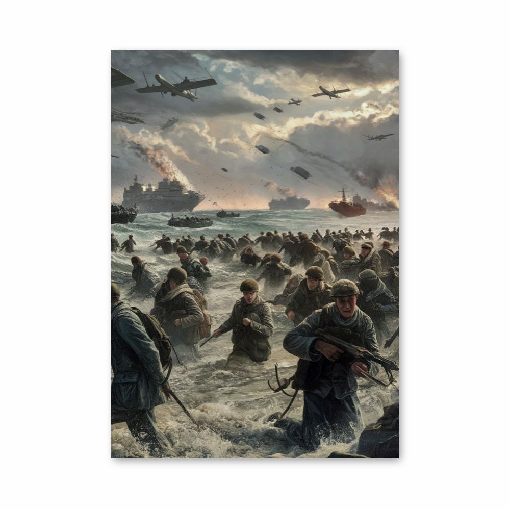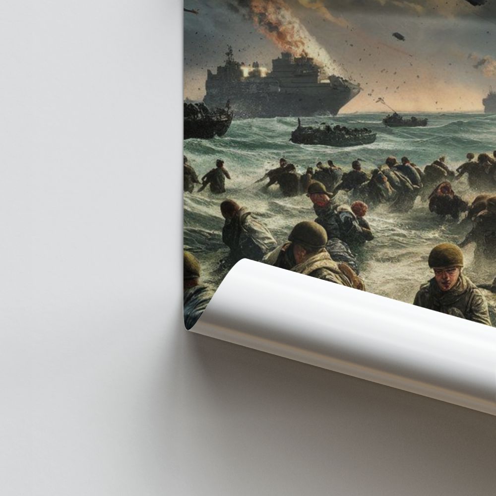 This Normandy Landings poster, from our Ww2 Collection, immortalizes a major historical moment of the Second World War. With its realistic and detailed design, it pays tribute to the courageous soldiers who participated in this decisive military operation. Printed on high-quality paper, this poster will bring a touch of history and bravery to your space.