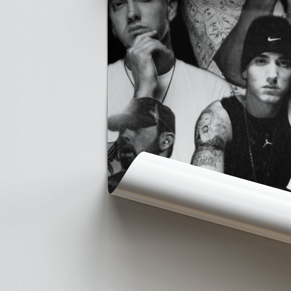 Immerse yourself in the controversial and captivating world of Eminem with our collage poster from the Eminem collection. This poster, printed on high quality paper, highlights various aspects of the legendary artist's career and life. Whether you're a fan of his debut or his more recent works, this poster is a must-have collector's item for any Eminem fan. It will add a touch of boldness and originality to your interior decoration.