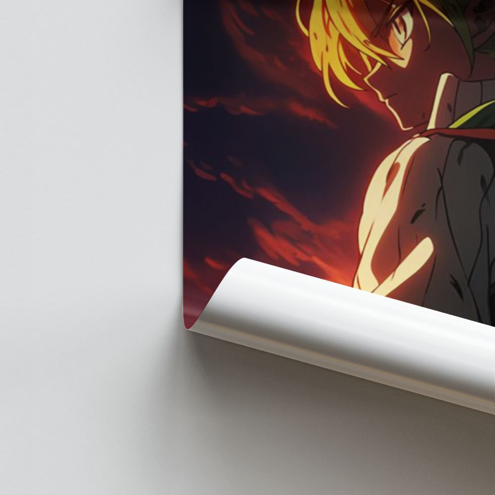 Immerse yourself in the world of Seven Deadly Sins with this Meliodas poster. This impressive visual captures the essence of the main character, Meliodas, on his journey to fight the forces of evil. Perfect for fans of the series, this poster is carefully printed for a high-quality finish.