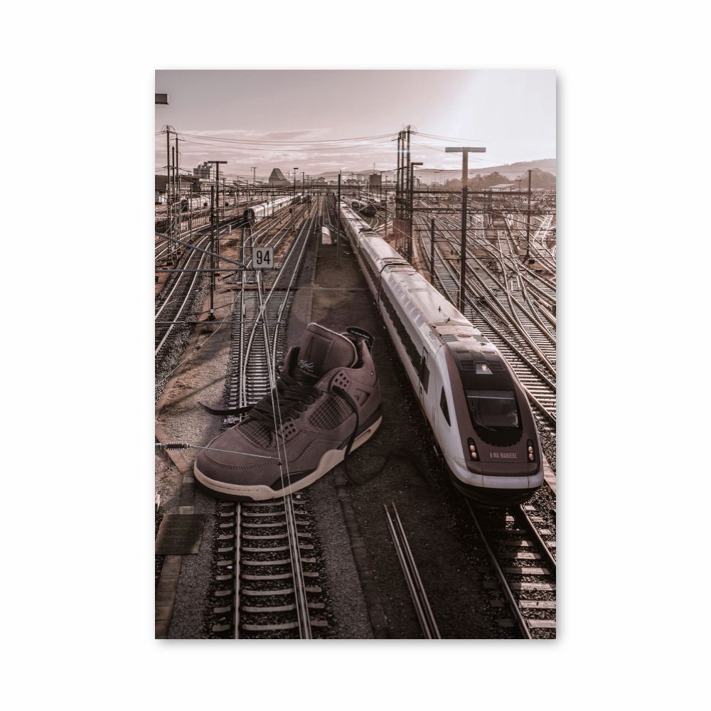 Immerse yourself in the world of sneakers with our exclusive poster from the Nike Jordan 4 collection. This work depicts the famous shoe in all its splendor, an undeniable symbol of the history of sneakers. Printed on high quality paper, this poster will add a touch of style and authenticity to your space. Perfect for collectors and sneaker enthusiasts.